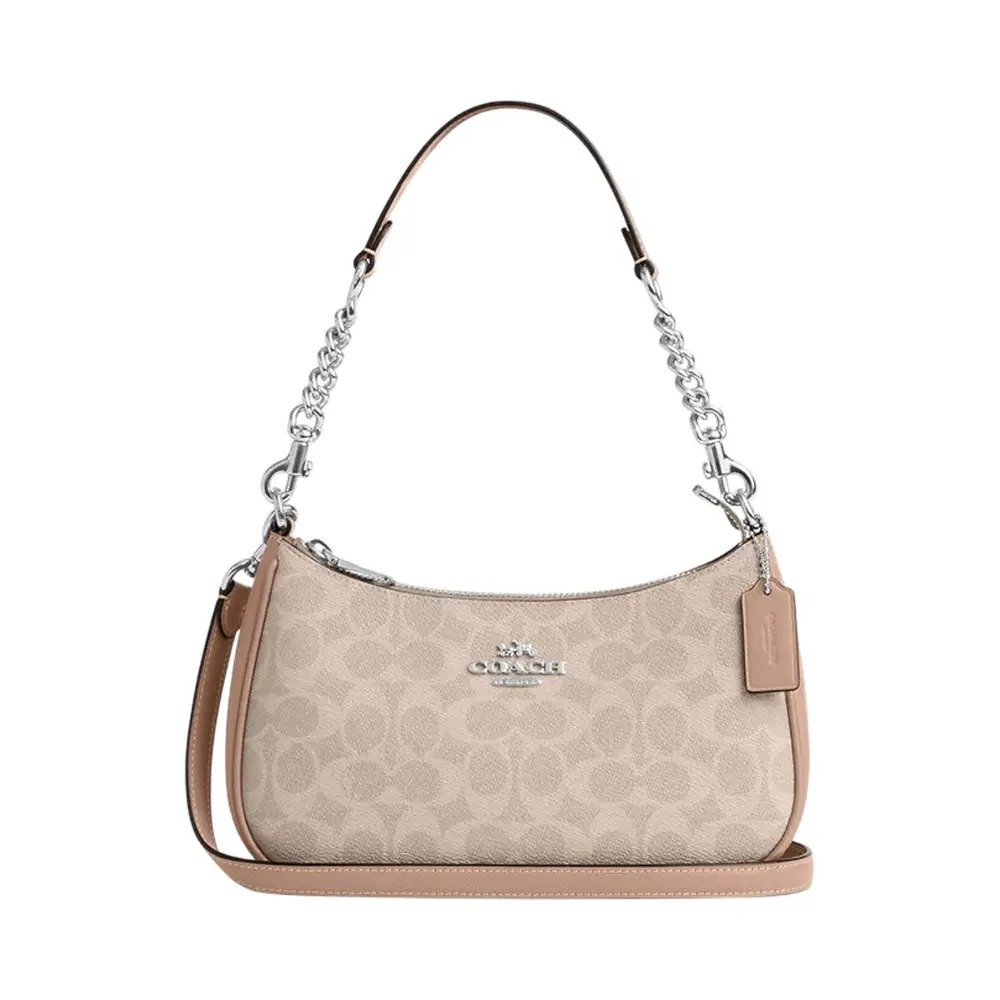 Signature coated canvas Two credit card slots Inside snap pocket Zip closure fabric lining Detachable short strap with 8 3/4 drop Detachable long strap with 22 1/2 drop for shoulder or crossbody wear 7 3/4 (L) x 5 (H) x 2 1/4 (W) Style No. CW323 | Coach Outlet Teri Mini Crossbody Bag In Signature Canvas – White