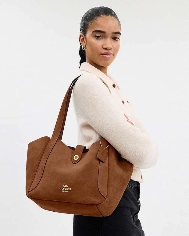 Measurements Length: 10.75″ Height: 9.5″ Width: 5.0″ Materials Suede and refined pebble leather Fabric lining Handle Handles with 11.5″ drop Features Inside zip pocket Turnlock closure