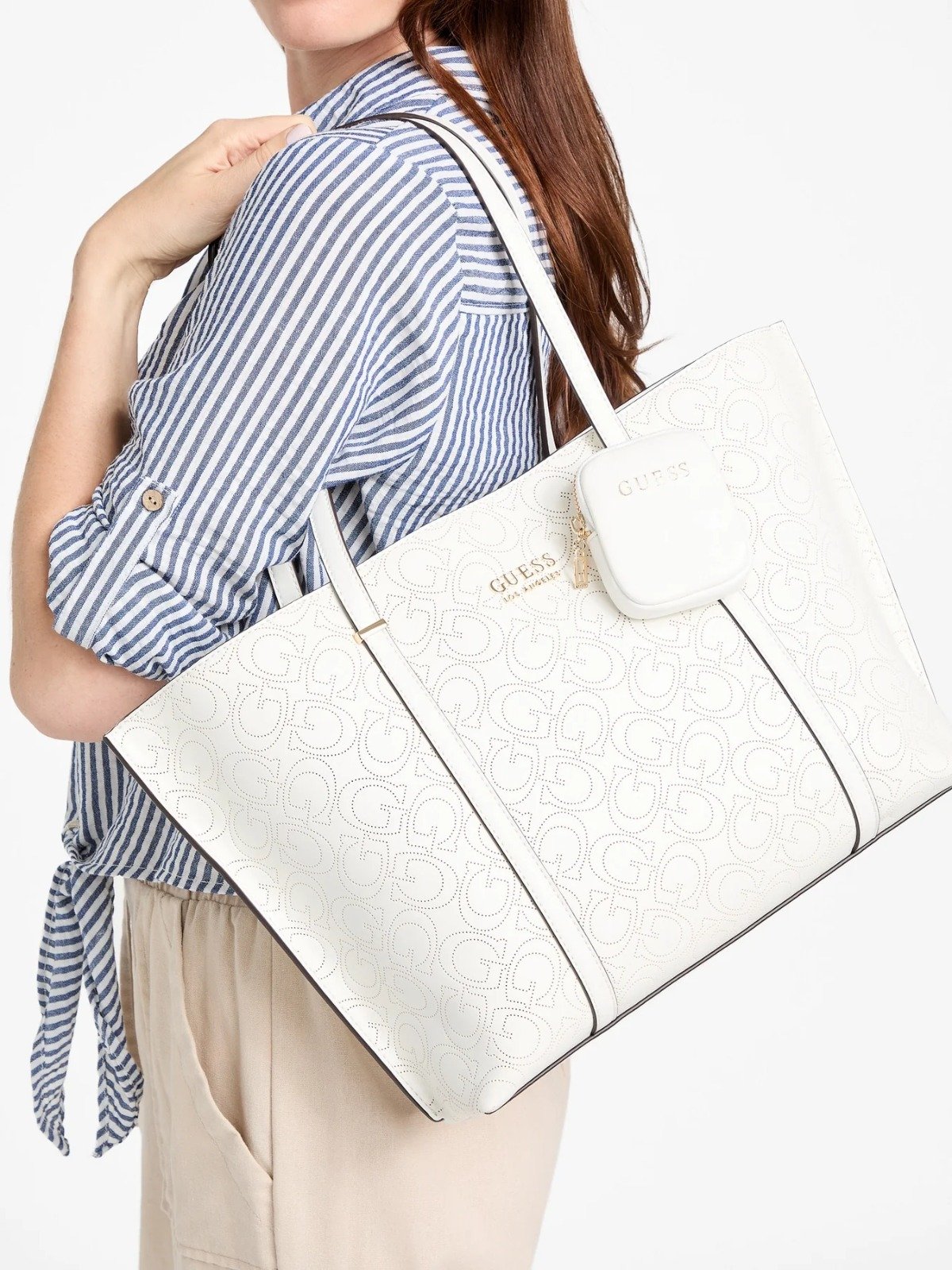 GUESS RUE PERFORATED TOTE COLOR WHITE (DELIVERY IN 4 WORKING WEEKS)