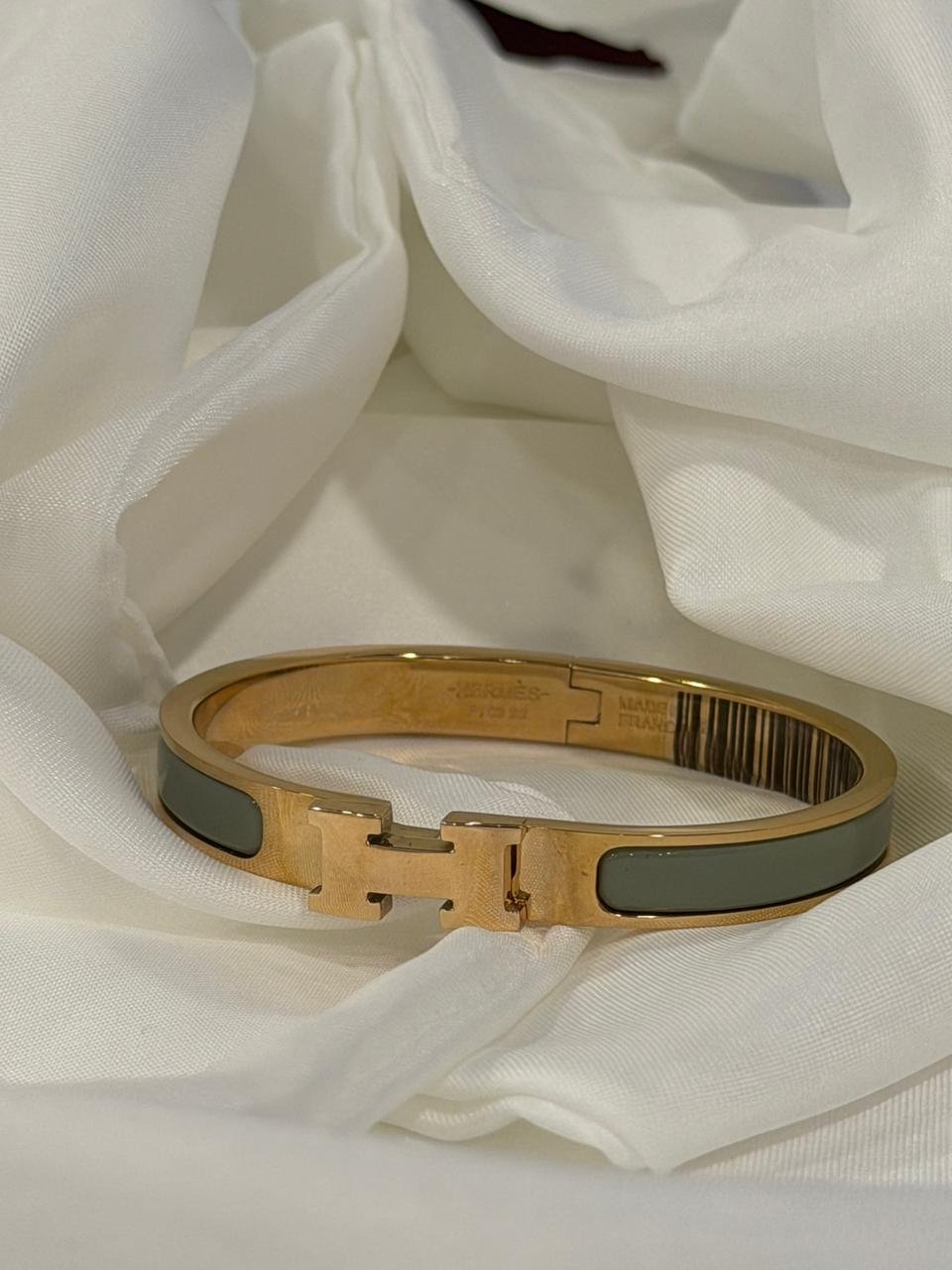 HERMES BANGLE GREEN AND ROSE GOLD THIN (INSPIRED)