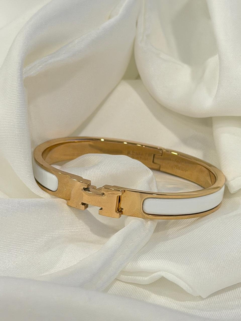HERMES BANGLE WHITE AND ROSE GOLD THIN (INSPIRED)