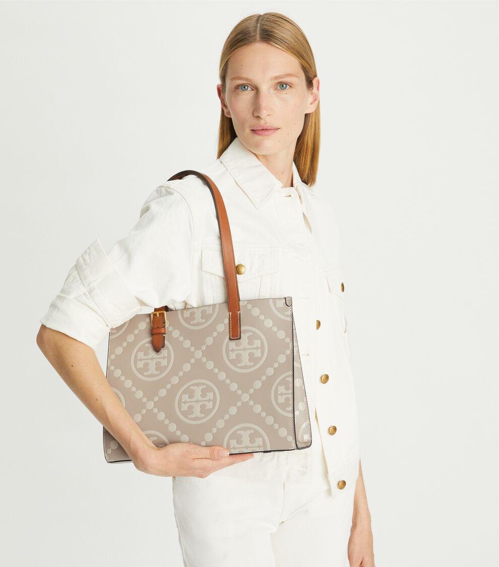 T MONOGRAM EMBOSSED CONTRAST SMALL TOTE COLOR LONGAN/NEW CREAM