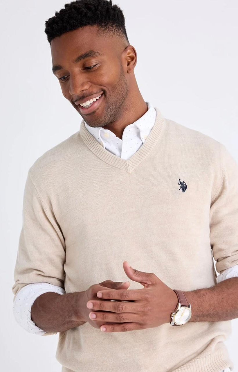 US POLO SOLID V-NECK SWEATER